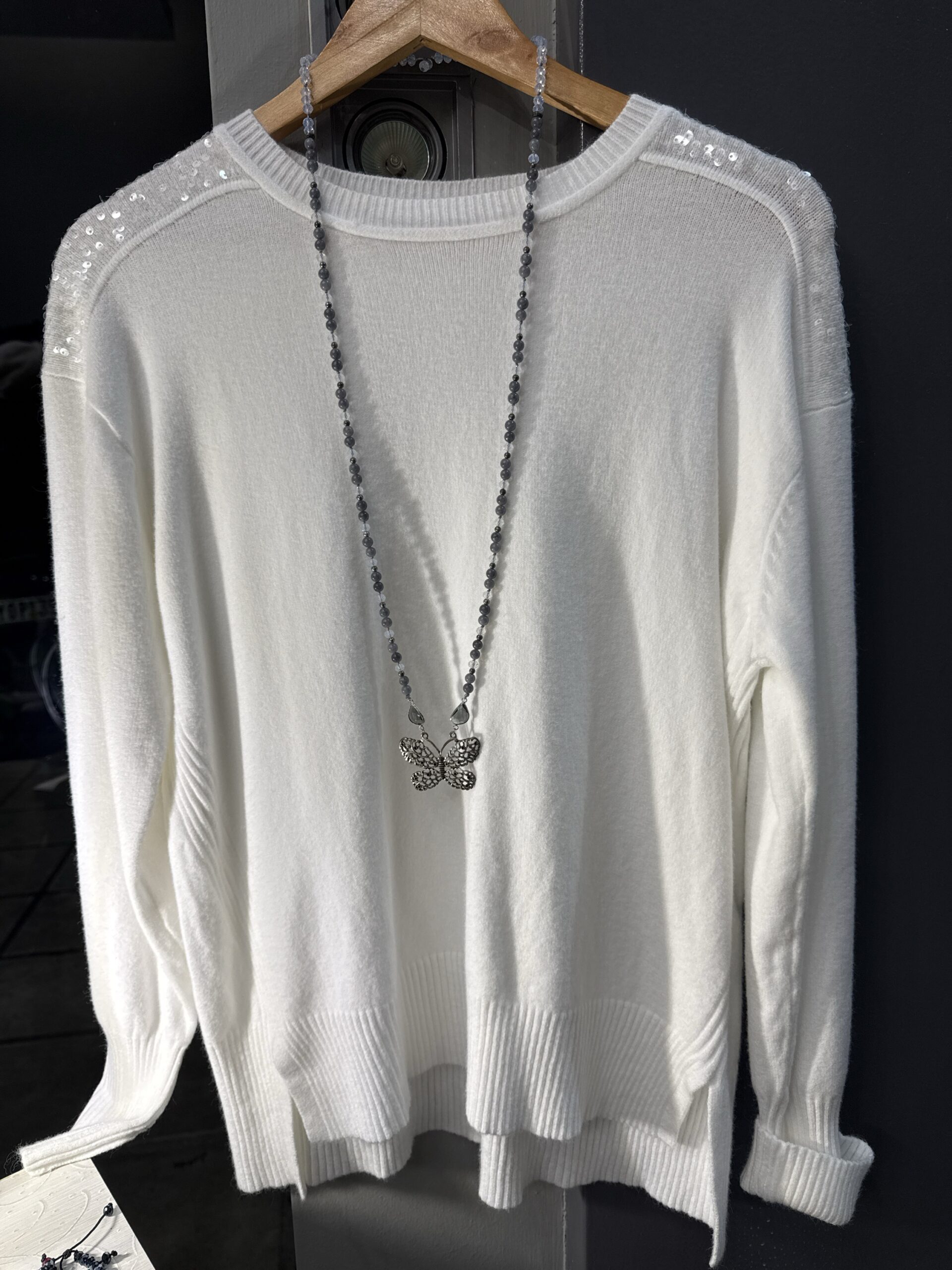 Μπλούζα μακρυά, με στρας στην επωμίδα, one size,σε χρώματα,άσπρο, μαύρο κ μπεζ.