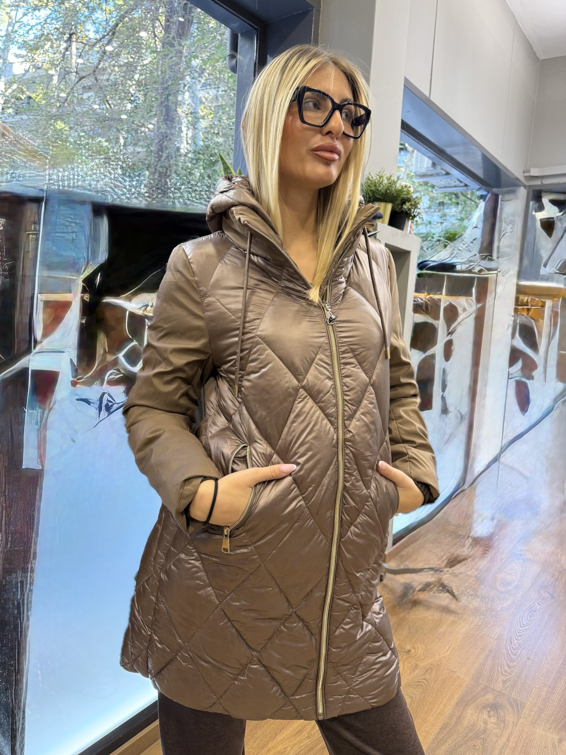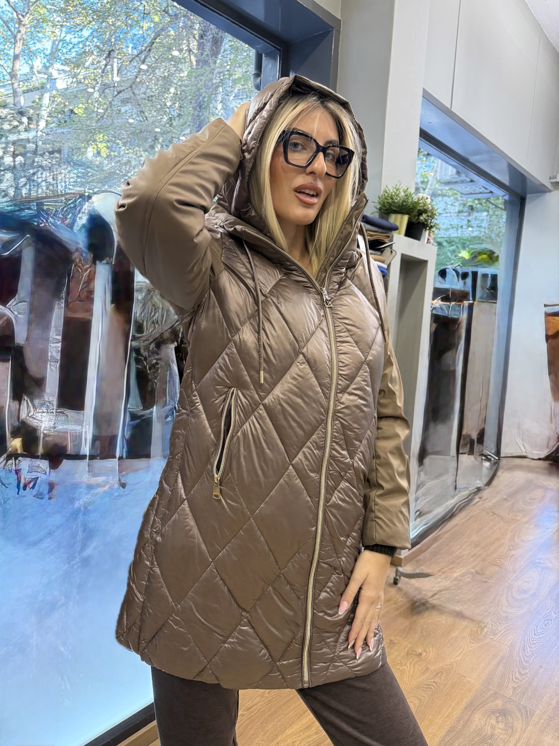 Μπουφάν καφέ,σοκολα με γούνα στην κουκούλα ,σε νούμερα από m έως 2xl.