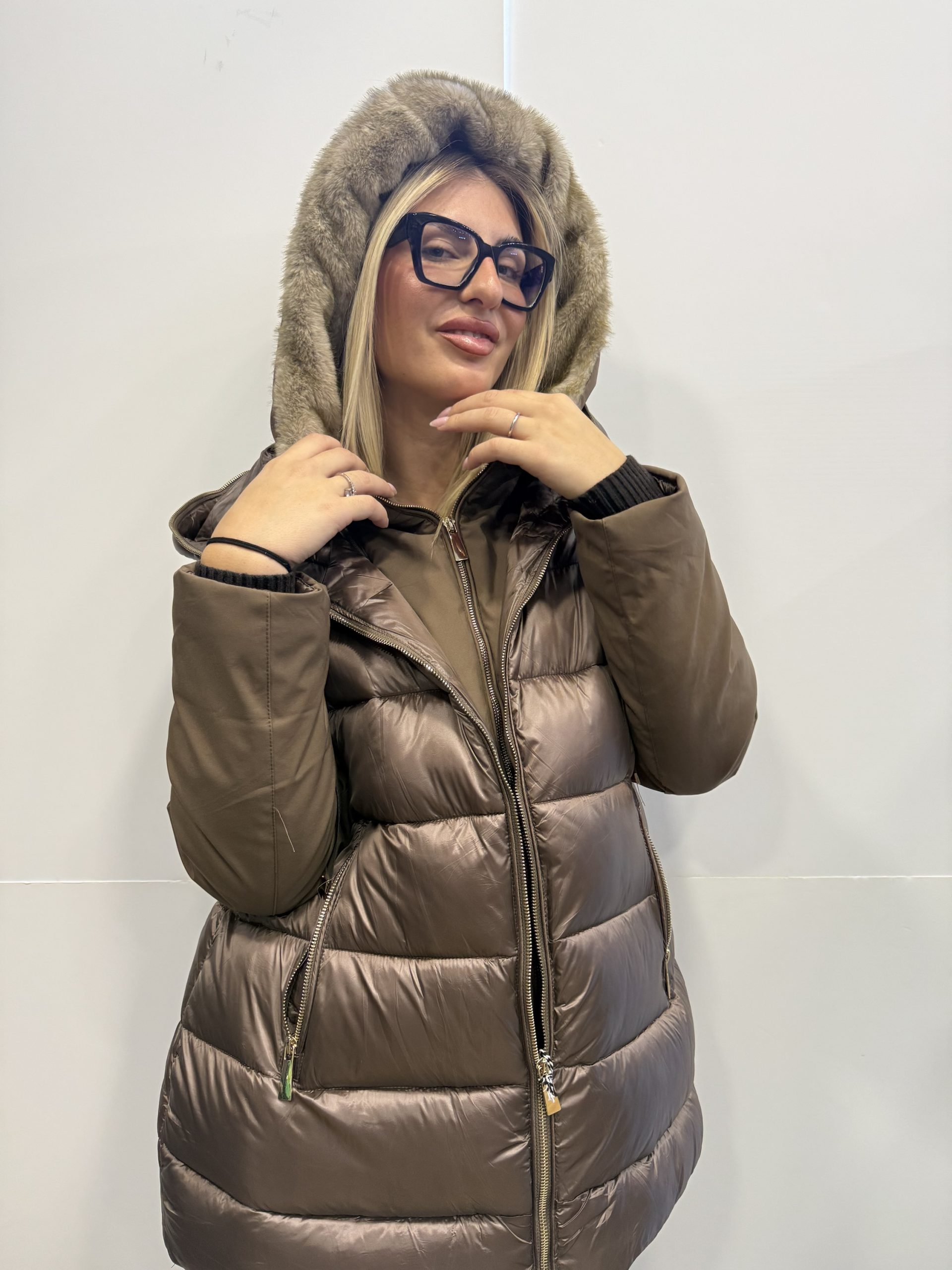 Μπουφάν καφέ με γούνα στην κουκούλα, σε νούμερα από m έως 2xl