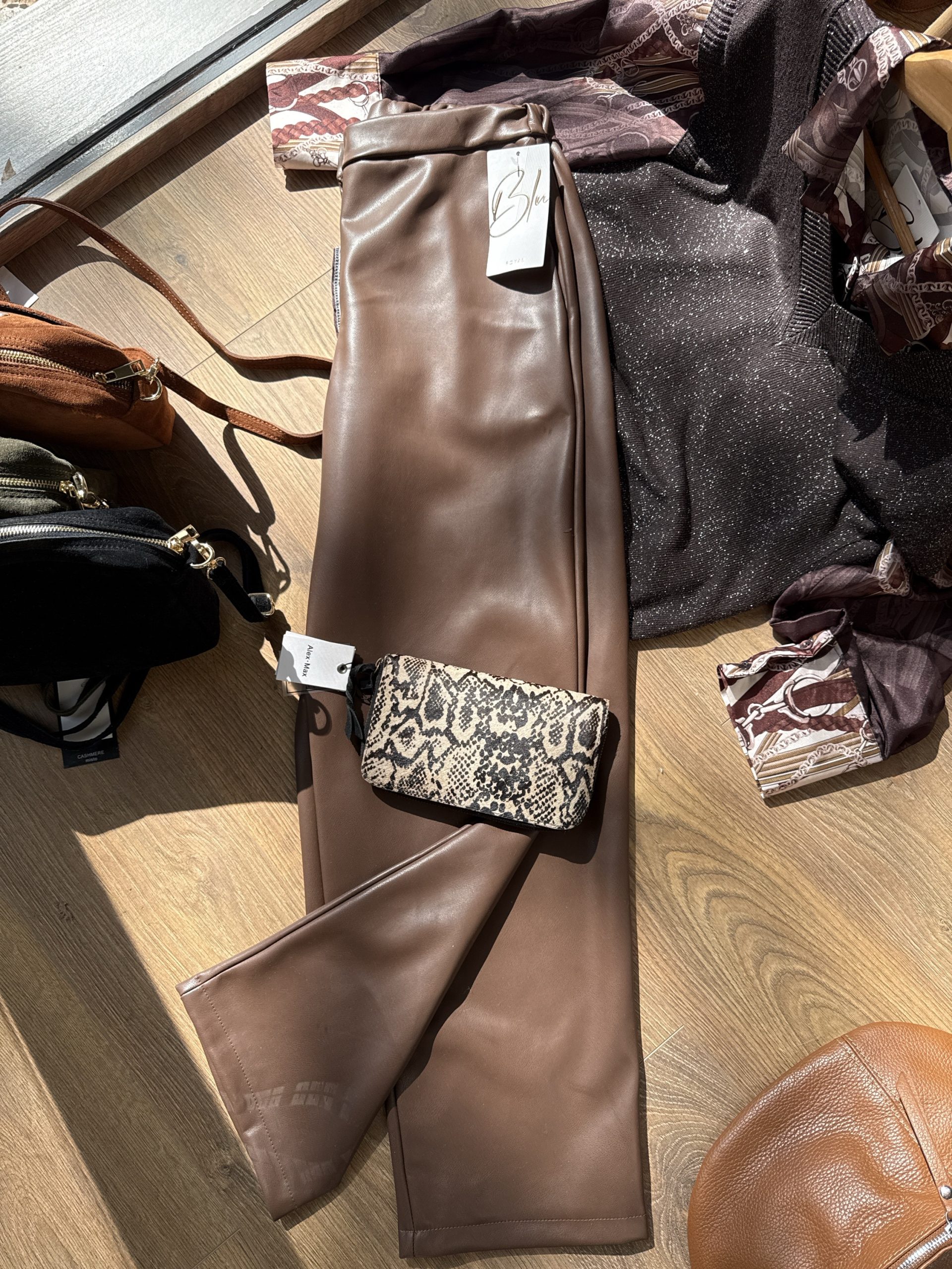 Παντελόνι δερματίνη καφέ-σοκολά,one size