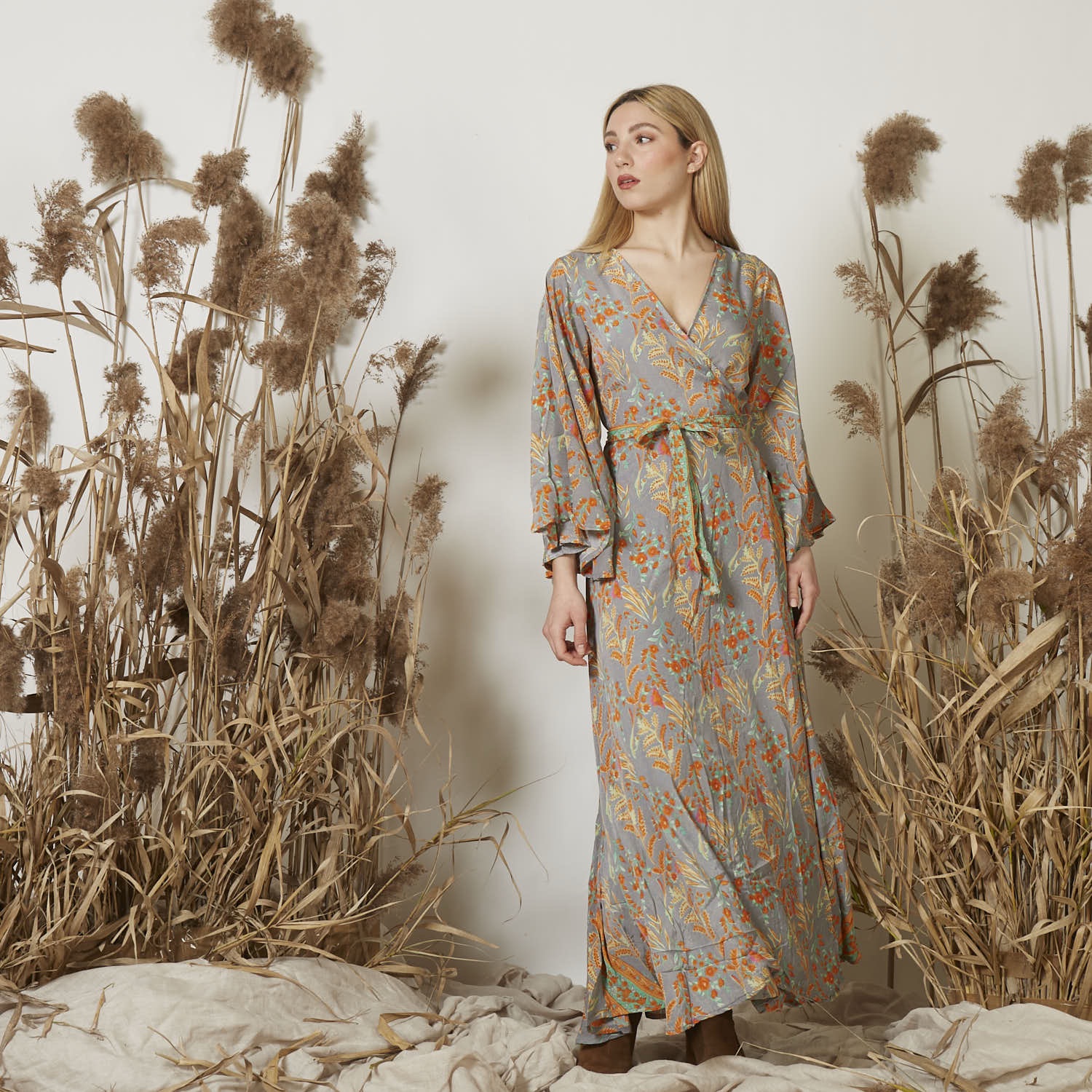 Φόρεμα μεταξωτό,κρουαζε, μακρύ.