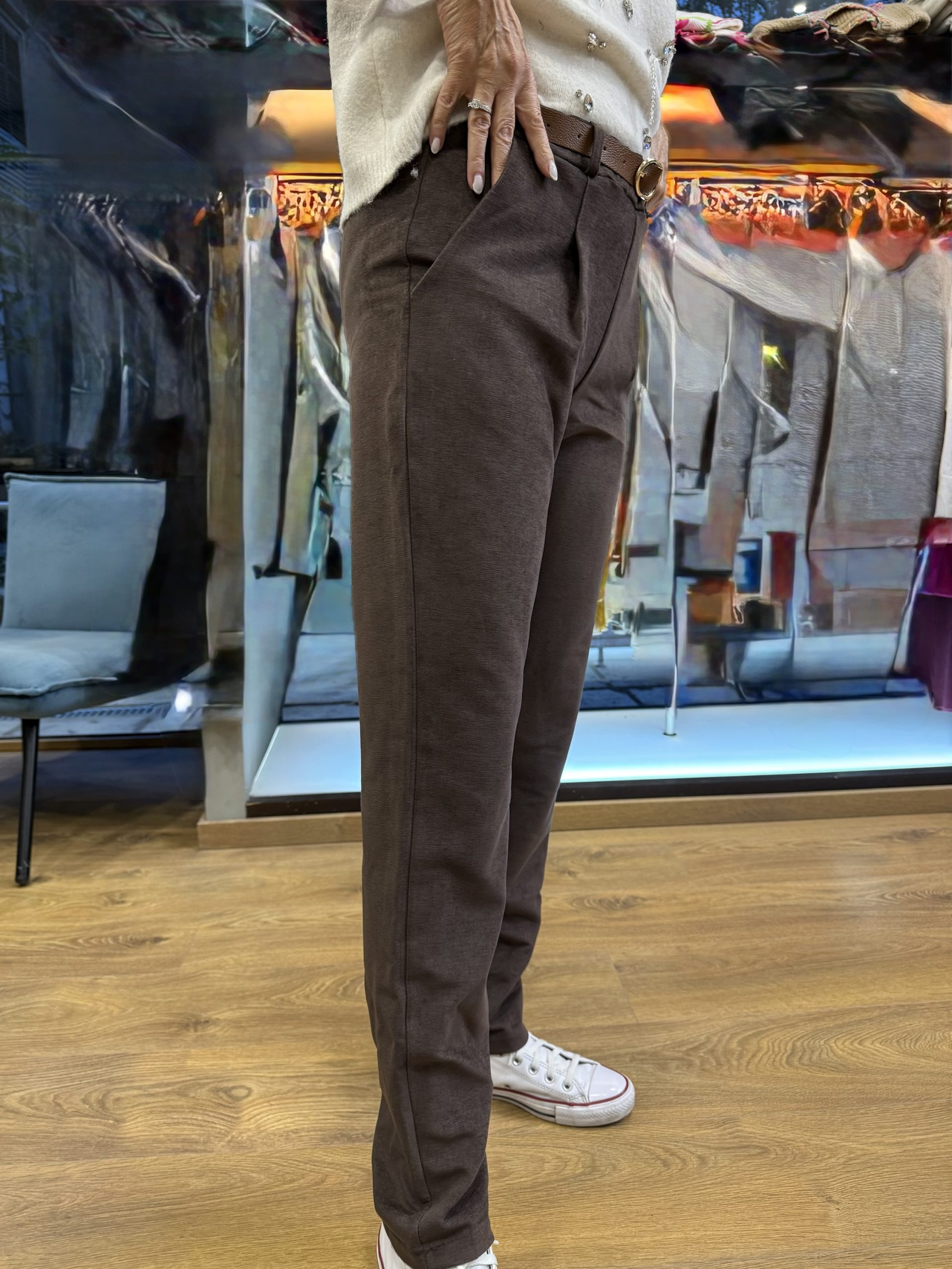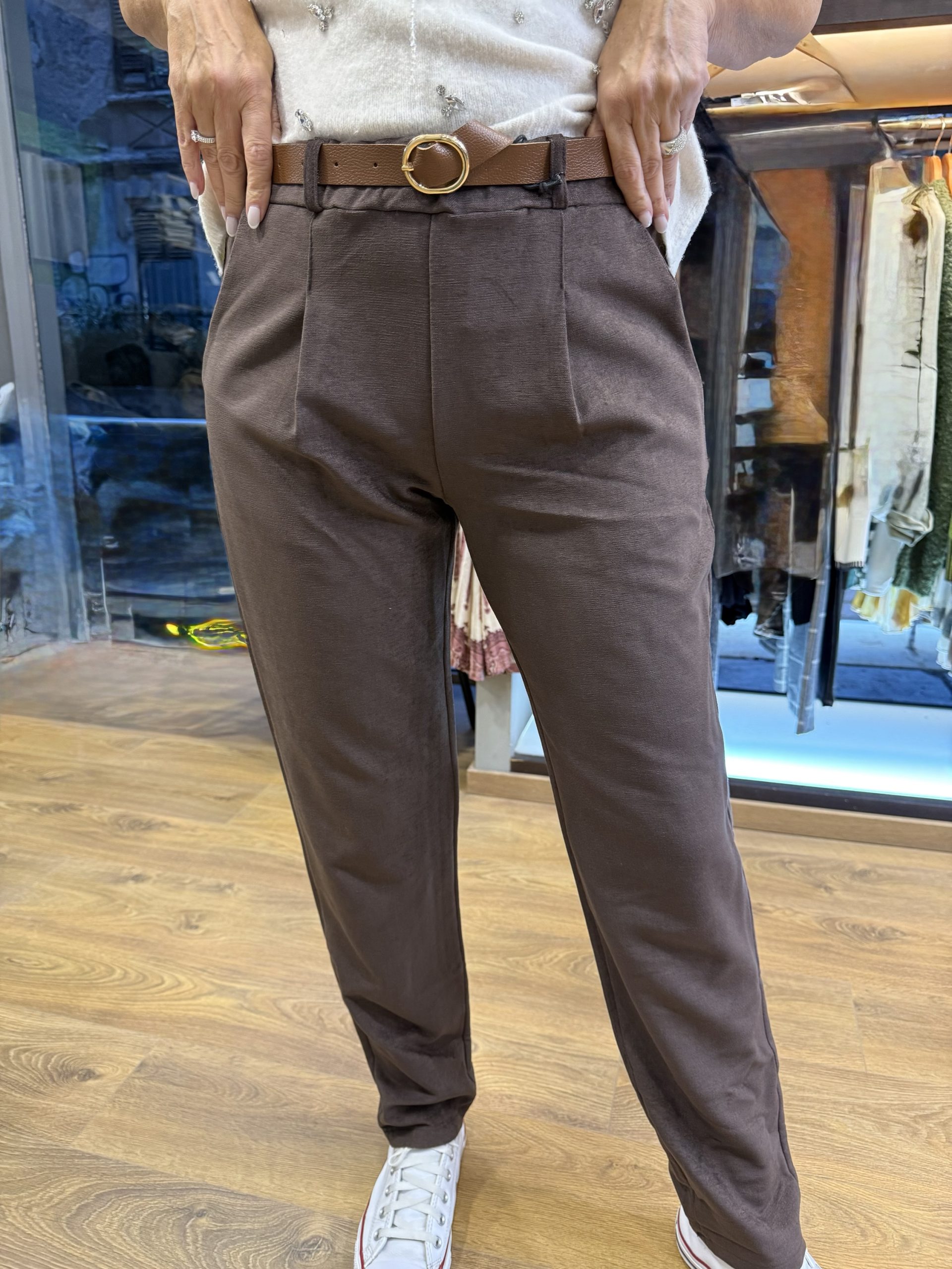 Παντελόνι καφέ αλκαντάρα , one size με πιέτα.
